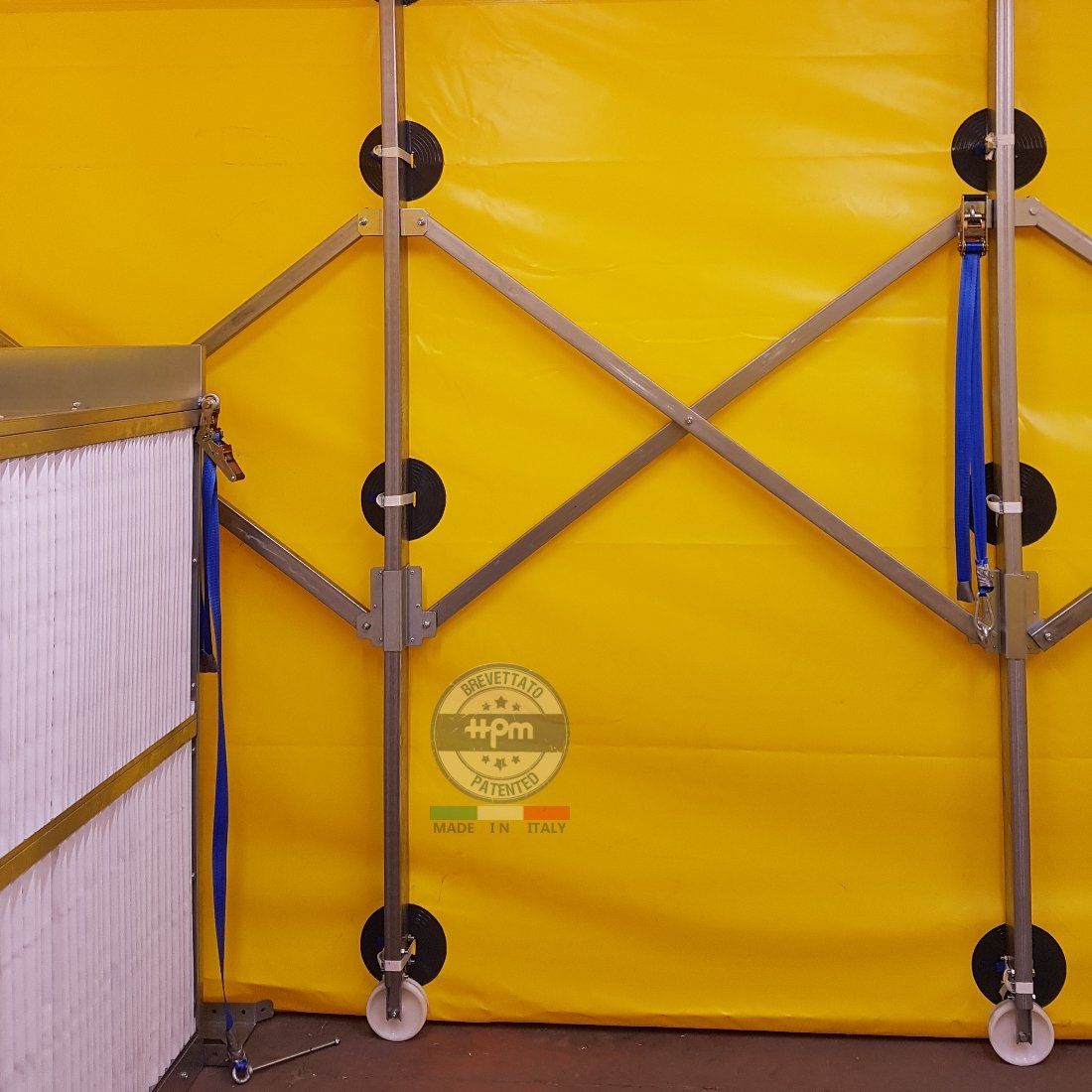 SPACE is a compactable / extensible solution, which allows you to: Save precious space (on average 75%) when not in use to position or re-position artifacts, for example with trolleys or overhead cranes Save electricity Reduce operating costs from 4 to 10 times lower and Made in Italy Exclusive and innovative solution Supplied ready for use